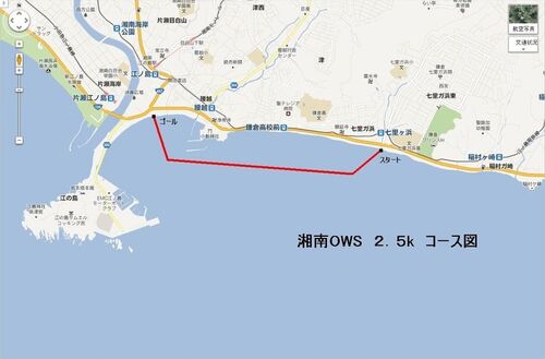 湘南オープンウォータースイミング 第1回が2004年に始り 今年で 9年目 だいたい毎年参加しているので 今年もレースに合わせて 帰国日を設定 七里ガ浜 をスタート 片瀬東浜 がゴール の 2.5 km ワンウェイ 60歳以上男子はスタートが1時間遅い 第4ウェーブ…